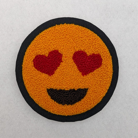 Emoji Chenille Patch -Heart Eyes- Traditional Moss Stitch on Felt Backing