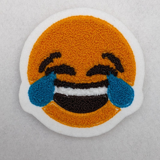 Emoji Chenille Patch -Tears of Joy - Traditional Moss Stitch on Felt Backing