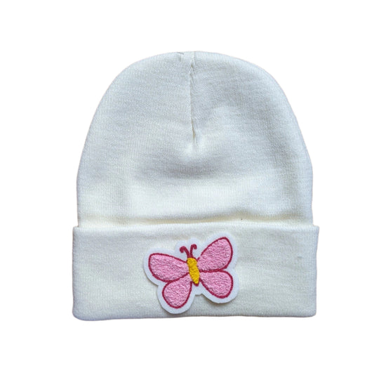 Beanie with Beautiful Butterfly Chenille Patch - Stocking Cap