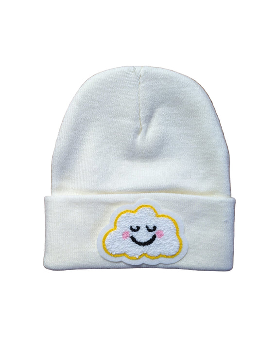 Beanie With Fuzzy Chenille Cloud Patch - Stocking Cap