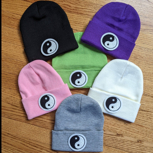 Beanie With Fuzzy Chenille Yin Yang Patch - Stocking Cap