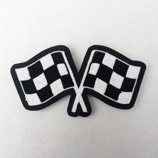 Crossed Checkered Flags Chainstitch Patch - Made in the USA