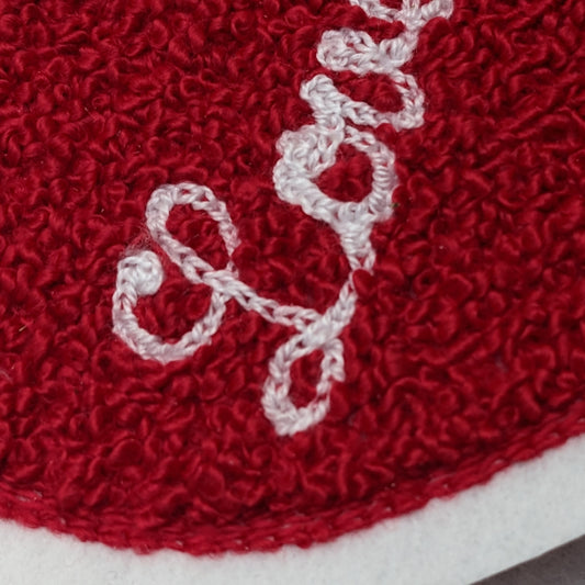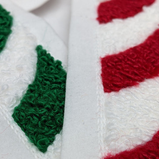 Christmas Candy Cane Chenille Patch - Traditional Moss Stitch on Felt Backing