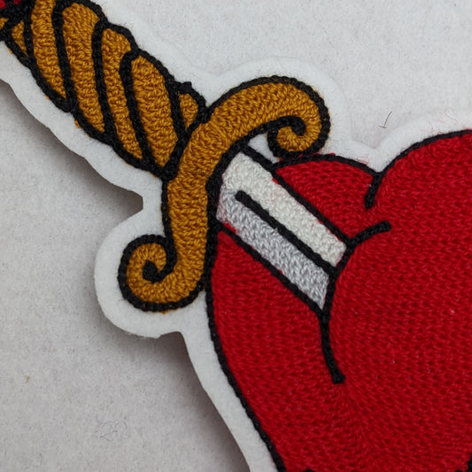Vintage Style Chainstitch Dagger Through Heart Patch - Sew On